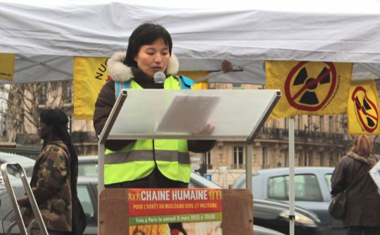 ❀ Toshiko Tsuji, a évoqué la victoire du PLD, parti d'extrême droite partisan de la reprise du nucléaire, aux élections du 16 décembre dernier au Japon. Hideki a lu en japonais, avec Toshiko pour la version française, l'appel de Satoshi Kamata pour le grand rassemblement de commémoration du 11 Mars 2011, ainsi que son discours sur la situation politique, sociale, et sanitaire du pays. > L'appel de Satoshi Kamata