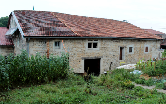 ❦ A l'arrière un terrain surplombe la battisse, on y accède par des escaliers en pierres, dont un a été refait. Sans vous raconter de salades, dans le jardin c'est la biodiversité qui domine, il y a donc de quoi occuper du monde si l'on veut favoriser la pousse des légumes, et tenter d'approcher l'autonomie alimentaire. Des douches d'été ont été installées en son centre, avec au Nord de ce local de grands bacs à compost. A l'arrière une partie non cultivée permet d'installer des tentes de camping, et tout au fond et en hauteur trône l’infatigable Ginette.