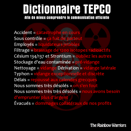 Action internationale de soutien, pour l'arrêt du nucléaire au Japon, en France et partout dans le monde. 💚