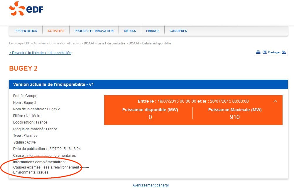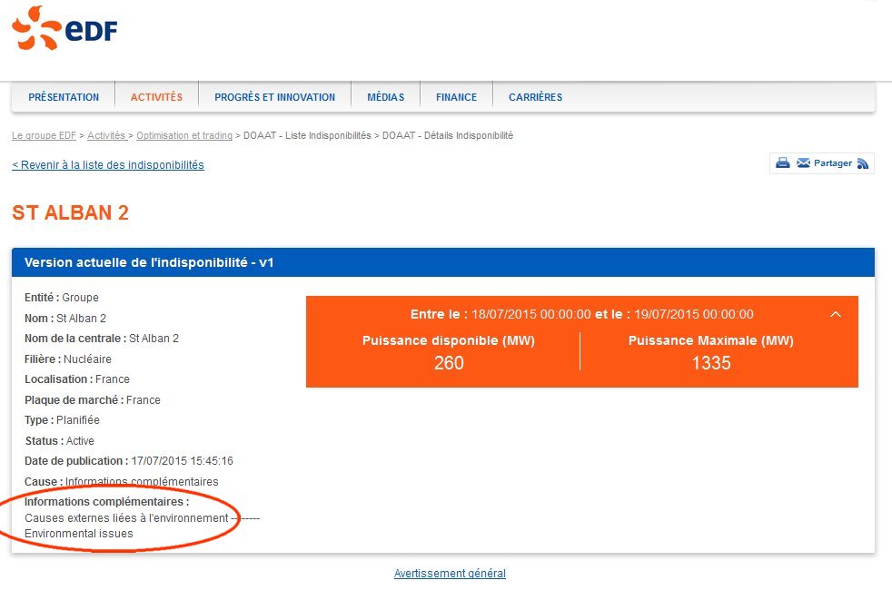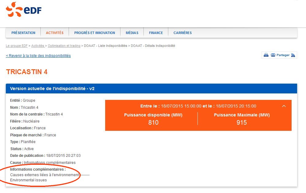 ⚠️ « Fortes chaleurs : la centrale nucléaire du Tricastin contrainte de ralentir temporairement un de ses réacteurs.» : 23 juillet 2015 - France Bleu