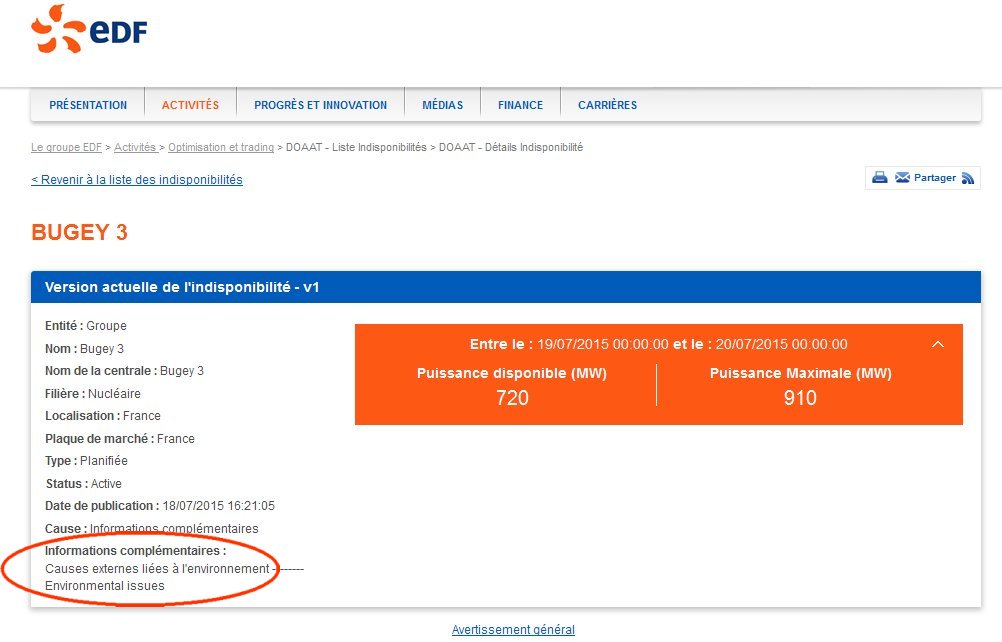 ♨️ En France « La canicule a mis EDF sous tension.» : 10 juillet 2015 - Le Journal de l'énergie