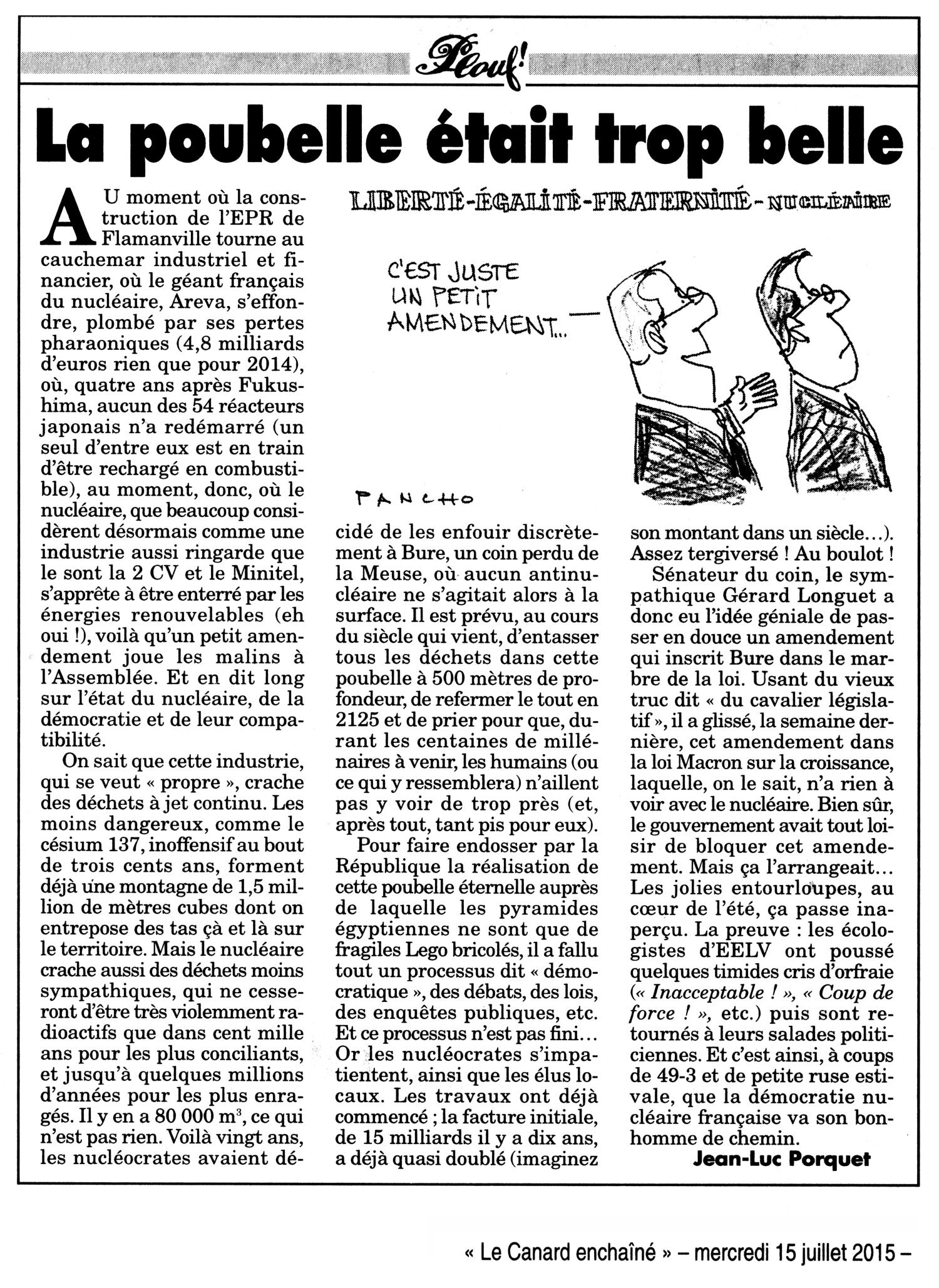 ❌ « Enfouissement des déchets nucléaires : oh ! la fausse surprise.» : 16 juillet 2015 - Le Nouvel Observateur