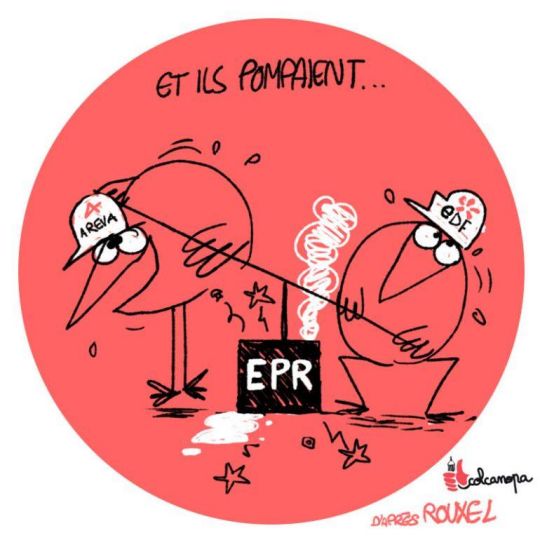 ...alors que le Conseil EDF a reporté sa "décision finale d'investissement" pour la dixième fois. Avec une forte opposition chez les syndicats français, et un projet affecté par des problèmes techniques et financiers graves, il est apprait que non seulement le projet d'Hinkley est en déroute, mais aussi tout le programme nucléaire du Royaume-Uni.»