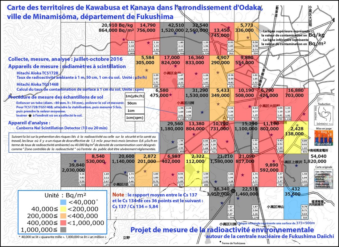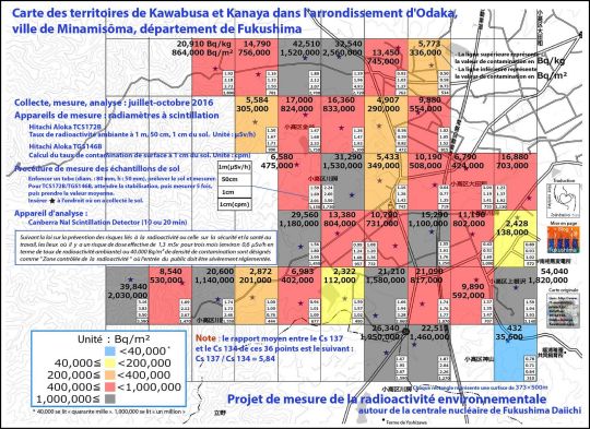 Illustration : cartes de relevés radiologiques via Pierre Fetet "le blog de Fukushima - Lanceurs d'alerte à Minamisōma"