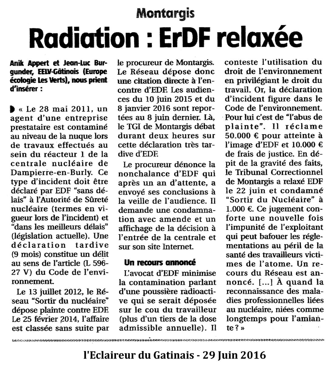 - dans la rubrique "faits divers", dans l'appellation incontrôlée "d'incidents" alors que pour ce qui est des problèmes routiers, il s'agit toujours "d'accidents", A noter également que l'intérimaire vaporisé l'a été très probablement avec de la vapeur radioactive contenant, parmi de nombreux autres radioéléments liés aux fuites primaires/secondaire, du tritium injecté sous haute pression dans l'organisme. "