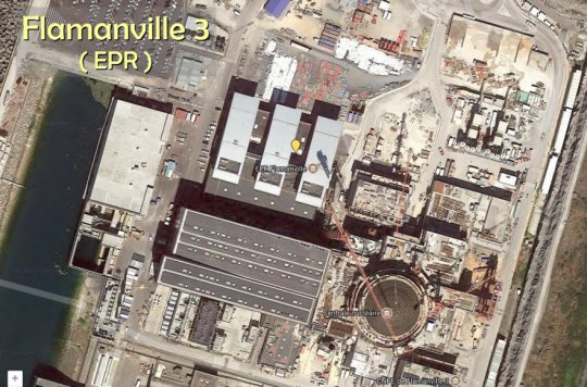 Illustration : vue satellite du chantier de l'EPR à Flamanville