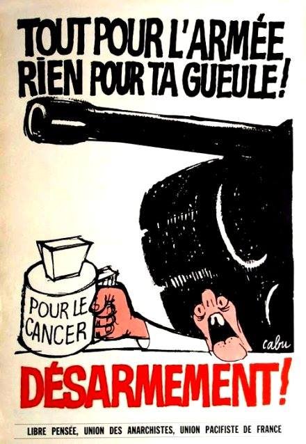 Illustration : dessin de Cabu pour l'union des Anarchistes et l'union pacifiste de France