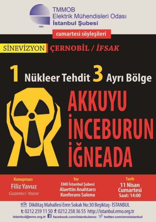 Illustration : affiche d'appel à rassemblement à Istanbul contre les projets nucléaires Turcs (Avril 2015).