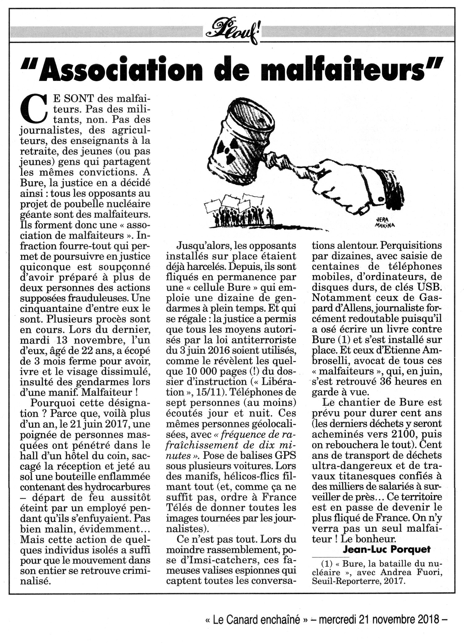 ❌ « Bure : le zèle nucléaire de la justice » : 14 novembre 2018 - Libération