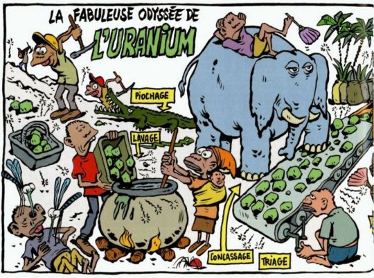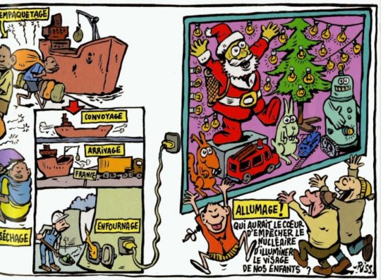 Illustration : dessin de RISS paru dans le Charlie Hebdo hors série No7 (Sept-Oct 2012) - « L'ESCROQUERIE NUCLÉAIRE.»