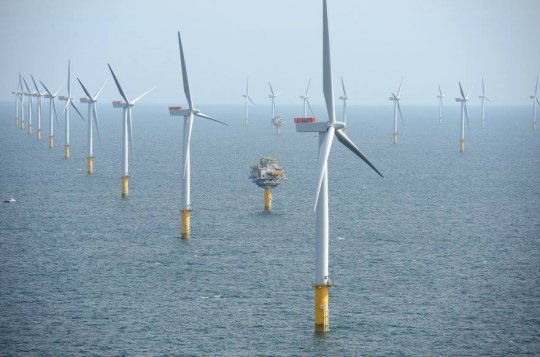 Illustration : parc éolien en mer de 'Sheringham Shoal' en... Angleterre, un phénomène totalement invisible sur nos cotes, même sans brouillard.