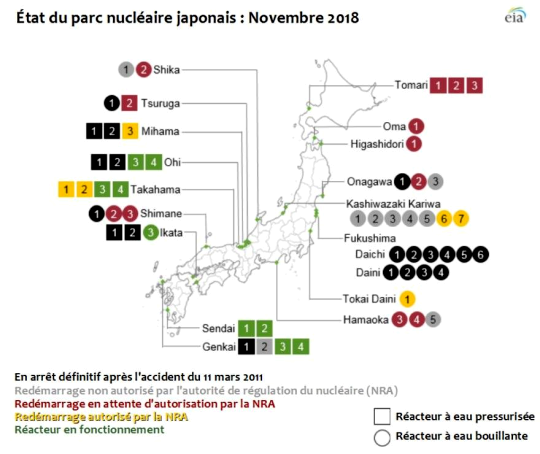 Illustration : état du parc nucléaire japonais en novembre 2018.
