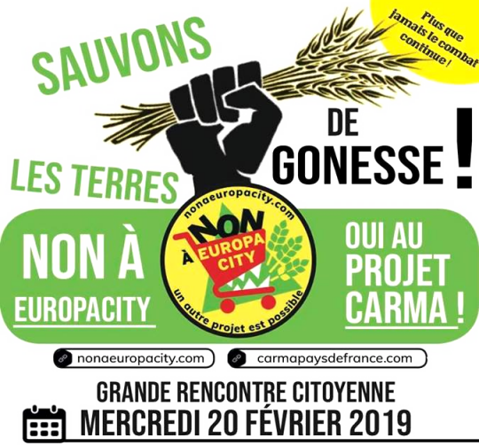 ❦ 13 mars 2019 - « EuropaCity, l'annulation du PLU de Gonesse relance le contre-projet agricole Carma » : WikiAgri