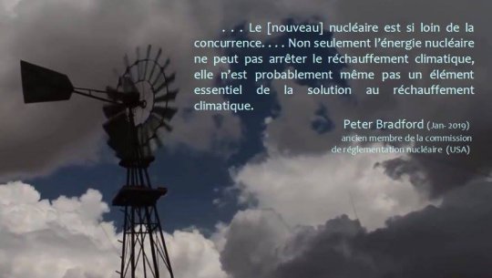 Illustration : image écran via "Walk in Beauty Clean Energy for a Changeable World" - allocution de Peter Bradford, ancien membre de la commission de réglementation nucléaire fédérale, source... : EWG