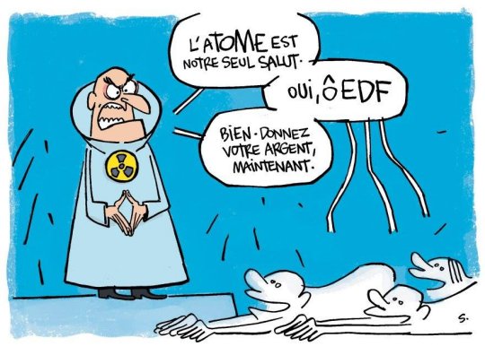 Illustration : dessin de RISS paru dans le Charlie Hebdo hors série No7 (Sept-Oct 2012) - « L'ESCROQUERIE NUCLÉAIRE.»