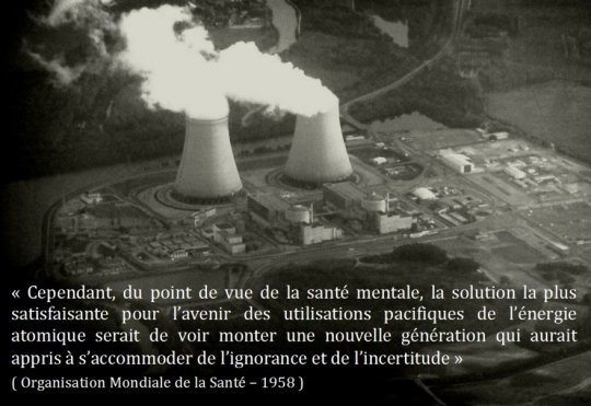 Illustration : photo Xtrasystole (centrale de Nogent sur Seine ), déclaration extraite d'un rapport de l'OMS de 1958 - AIEA Santé