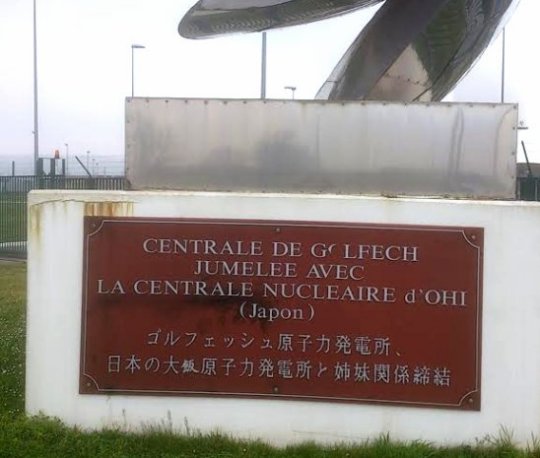 Illustration : stèle du jumelage avec la centrale nucléaire japonaise d'Ohi ( 2 réacteurs définitivement arrêtés, et 2 redémarrés )