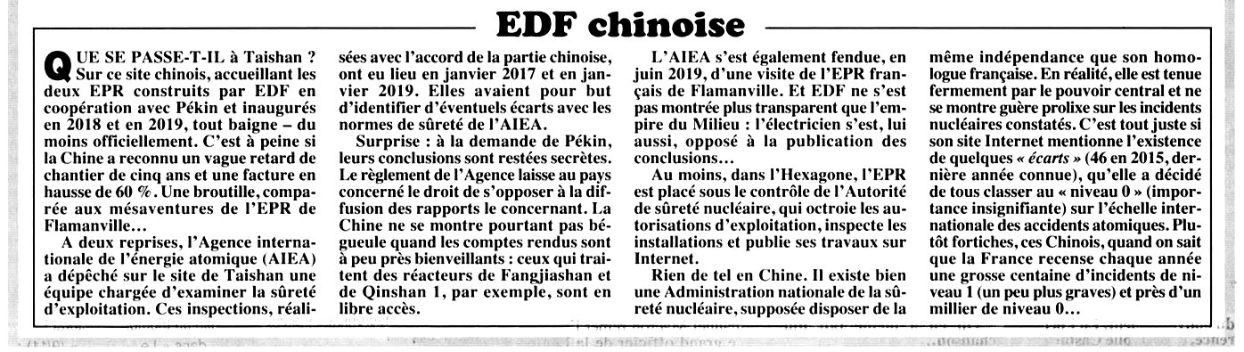🛠️ « À Hinkley Point, le rapprochement entre EDF et CGN, le dragon chinois » : 11 décembre 2019 - La Tribune
