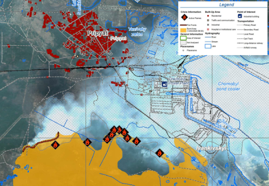 ☢️ « Images satellites des feux qui ont sévit dans la zone d'exclusion de Tchernobyl et leurs panaches de fumée orientés au gré des vents » : 5 avril - image Zoom Earth / 9 avril - image Zoom Earth / 13 avril - Zoom Earth (direct)