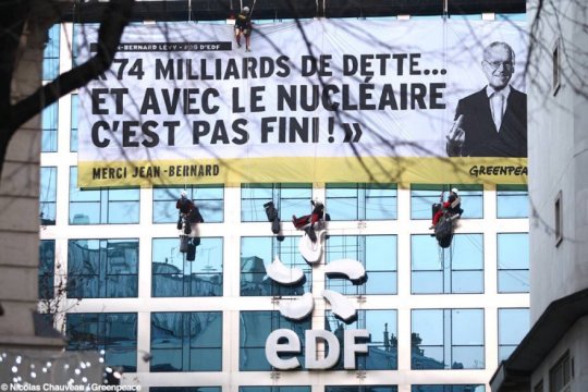 Illustration : action de Greenpeace sur le siège parisien d'EDF en décembre 2016