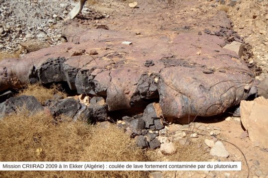 Illustration : via CRIIRAD 2009 à In (Ekker Algérie) : coulée de lave résultant d'un tir atomique