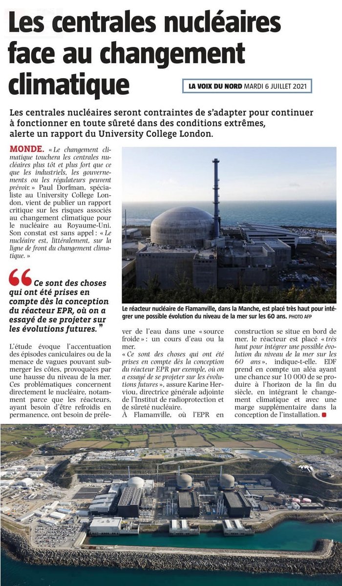 🛠️ « Les centrales nucléaires face au changement climatique » : 6 juillet 2021 - La Voix du Nord - Note : pour parer au risque de submersion, on vous joint une photo en pied d'article pour que vous puissiez évaluer la marge en question