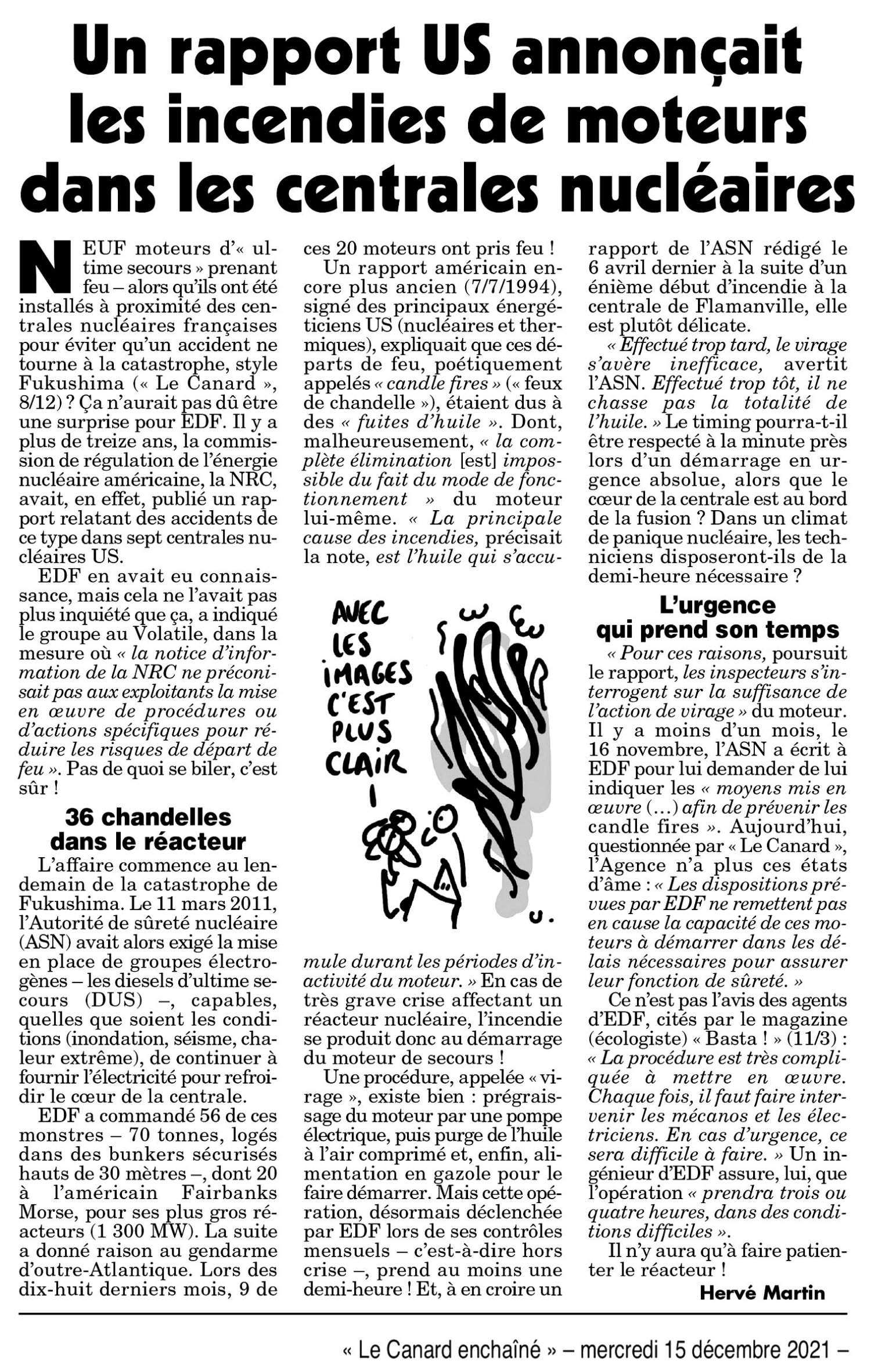 🚨 « Un rapport US annonçait les incendies de moteurs dans les centrales nucléaires » : 15 décembre 2021 - Le Canard enchaîné