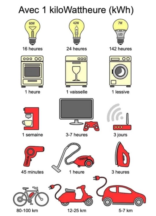 Illustration : que peut-on faire avec 1 Kilowatt/h ?