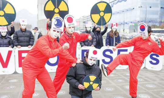 Illustration : à Séoul protestations très scénarisées contre le projet de déversement dans la mer des eaux polluées de la centrale Fukushima 1 - 7 novembre 2023 - Fukushima 311 Watchdogs /Global Times