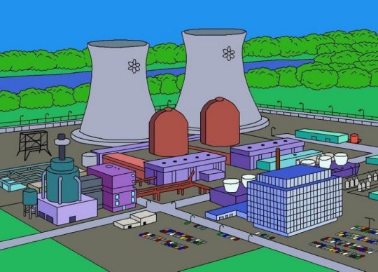Illustration : ressemblance entre la centrale de Springfield du dessin animé "Les Simpsons" et les premiers réacteurs de la centrale de Vogtle qui ont du servir de modèle - VOTGLE.NPP-USA