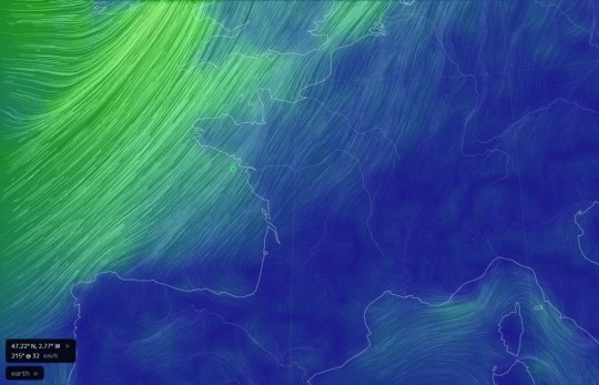 Illustration : représentation en temps réel des vents à la surface (ou en altitude) du globe terrestre, via les site earth.nullschool.net.
