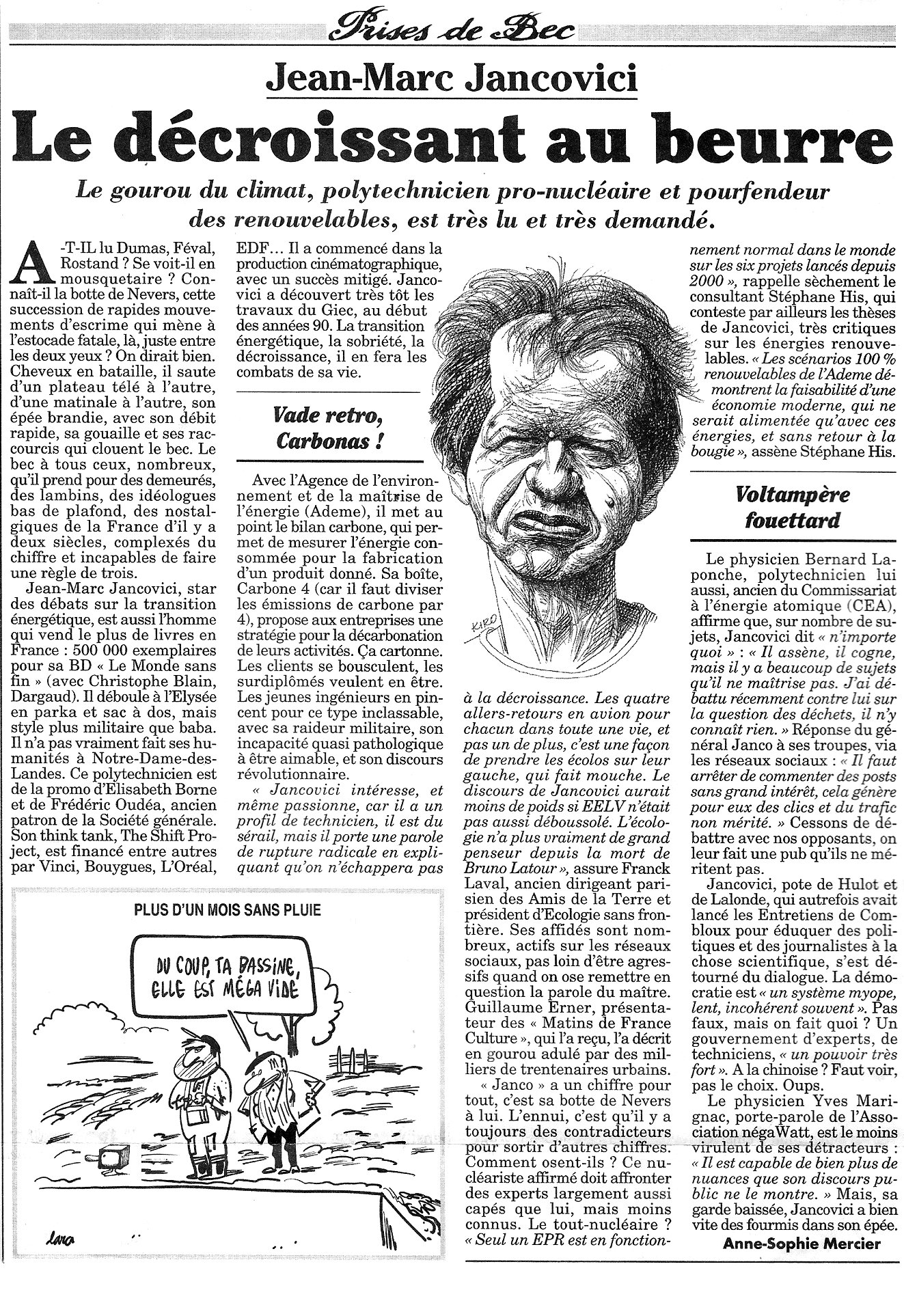 ⛔ « Jean-Marc Jancovici, le décroissant au beurre » : 22 février 2023 - Le Canard enchaîné