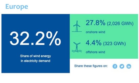 Illustration : part de l'éolien en Europe le 5 novembre 2023, probablement un nouveau record publié par Windeurope - Énergies de la mer