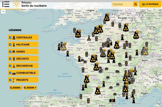 Illustration : Un inventaire qui tombe bien, le réseau sortir du nucléaire à aussi mis à jour sa carte, toujours plus exhaustive que les rapports officiels. France atomique