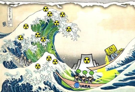 Illustration : Okusai revisité après mars 2011... - * Note : Dont 7 failles sismiques actives situées sous les centrales atomiques, le Japon compte aussi 77 volcans actifs et subit régulièrement l'assaut de Typhons océaniques. - ° Note : Selon Wikipédia en mars 2024 - réacteurs nucléaires au Japon