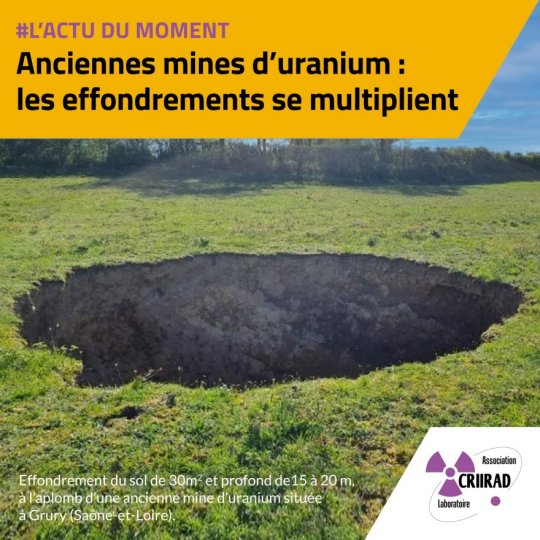 🚫 « Anciennes mines d’uranium : les effondrements se multiplient, Orano et l’État doivent s’engager pour la prévention » : 5 décembre 2024 - CRIIRAD - Note : Si Areva a bien été renflouée par l'état la dette écologique creusée depuis + de 50 ans n'est pas encore soldée