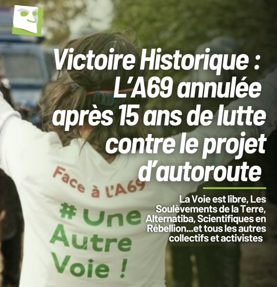❦ 30 décembre 2025 - « A69 : la justice administrative autorise la poursuite du chantier contesté d'autoroute, un collectif écologiste engage un pourvoi en cassation » : FranceInfo_fr