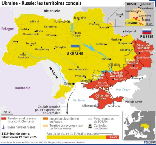 Illustration : Front ukrainien au 19 mars 2025