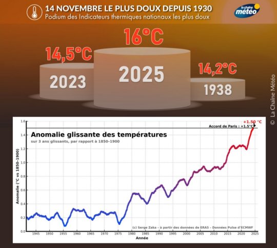 Illustration : assemblage via "La Chaîne Météo" + Serge Zaka données ERA5 et Pulse d'ECMWF