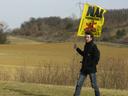 Campagne du réseau : barrons la route à l'uranium, pour la commémoration de la catastrophe de Tchernobyl, interpellations visuelles. >☢️