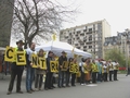 Campagne du réseau : barrons la route à l'uranium, pour la commémoration de la catastrophe de Tchernobyl, interpellations visuelles. >☢️